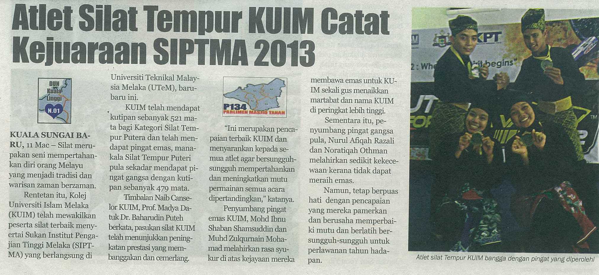 Atlet Silat Tempur KUIM Catat Kejuaraan SIPTMA 2013