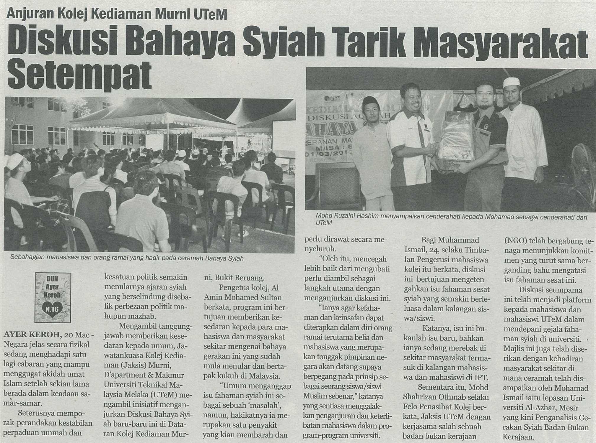 Anjuran Kolej Kediaman Murni UTeM Diskusi Bahaya Syiah Tarik Masyarakat Setempat
