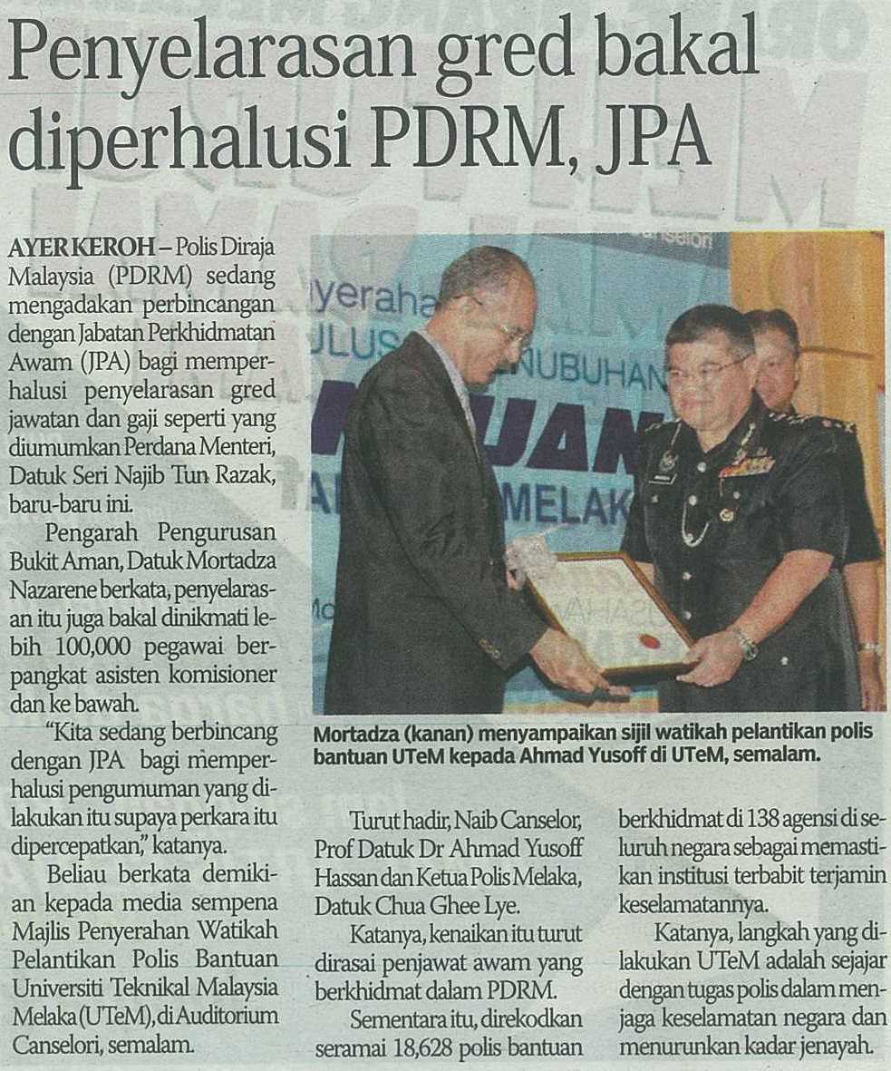 Penyelarasan gred bakal diperhalusi PDRM, JPA