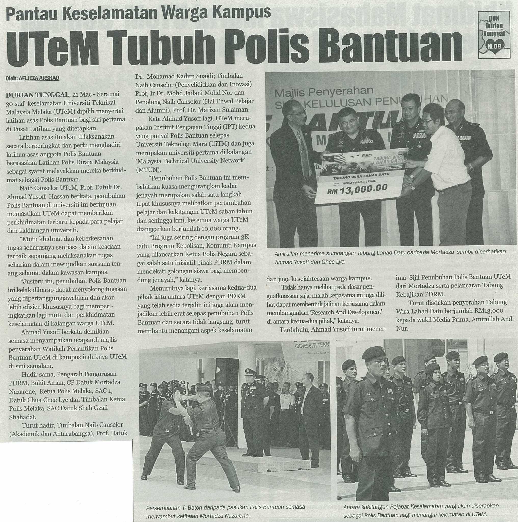 Pantau Keselamatan Warga Kampus UTeM Tubuh Polis Bantuan