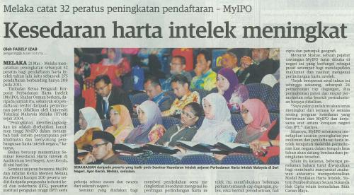 Melaka catat 32 peratus peningkatan pendaftaran - MyIPO, Kesedaran harta intelek meningkat