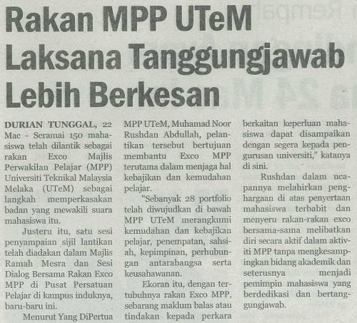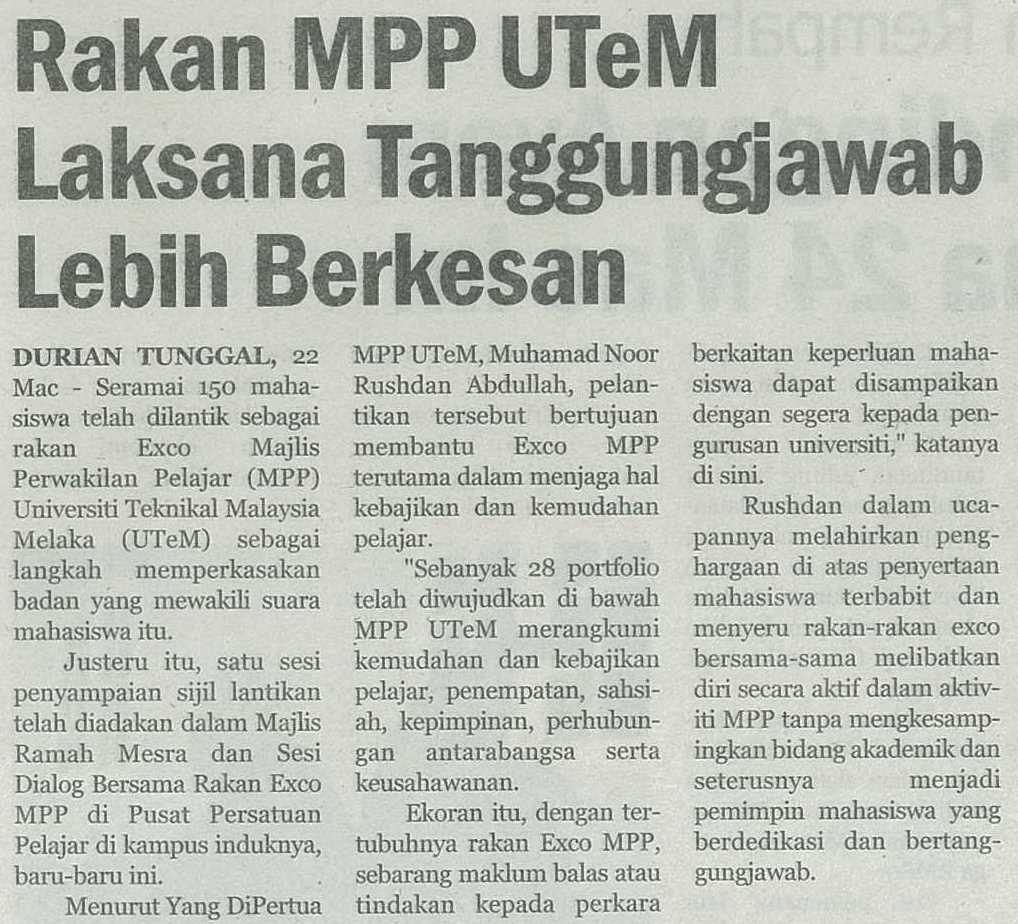 Rakan MPP UTeM Laksana Tanggungjawab Lebih Berkesan