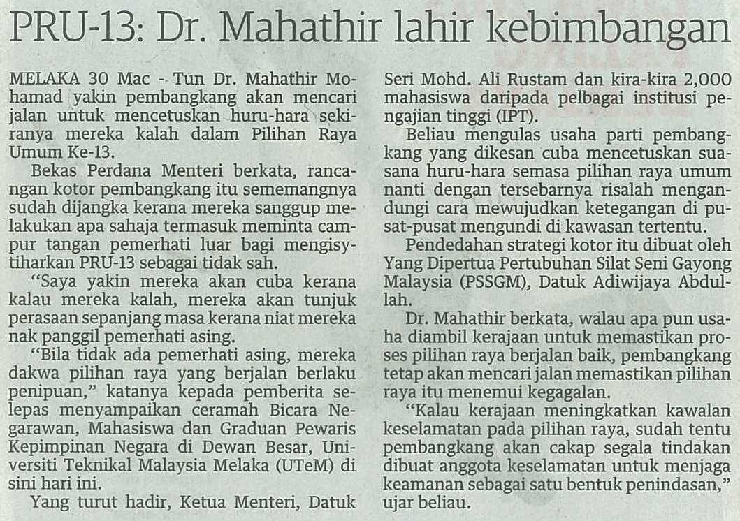 PRU-13: Dr. Mahathir lahir kebimbangan