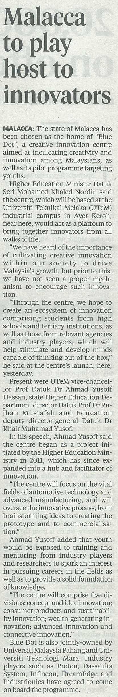 Malacca to play host to innovators