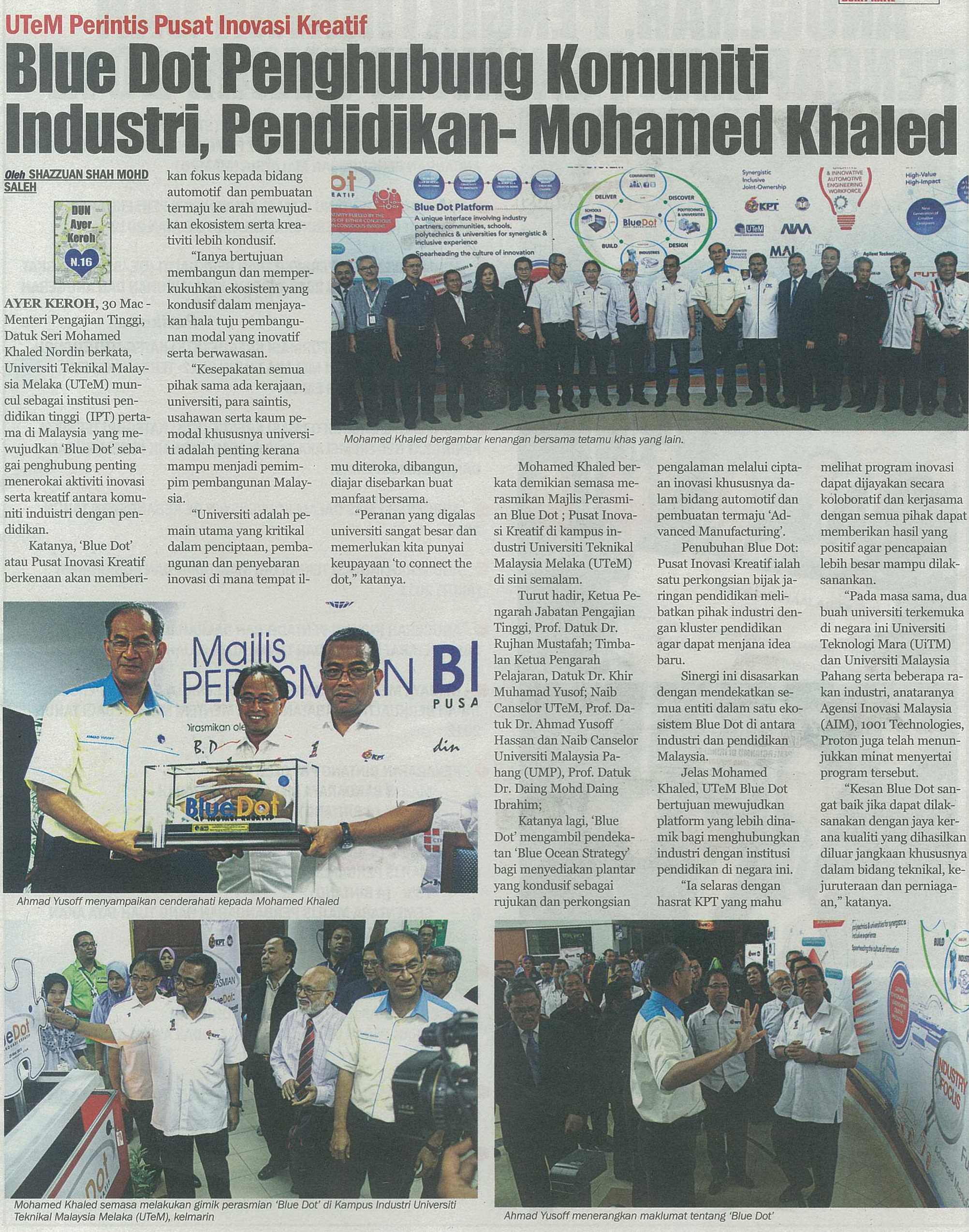 UTeM Perintis Pusat Inovasi Kreatif Blue Dot Penghubung Komuniti Industri, Pendidikan- Mahamed Khaled