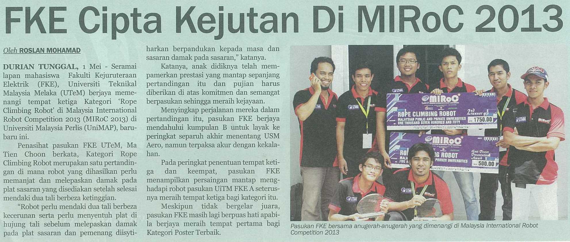 FKE Cipta Kejutan di MIRoC 2013