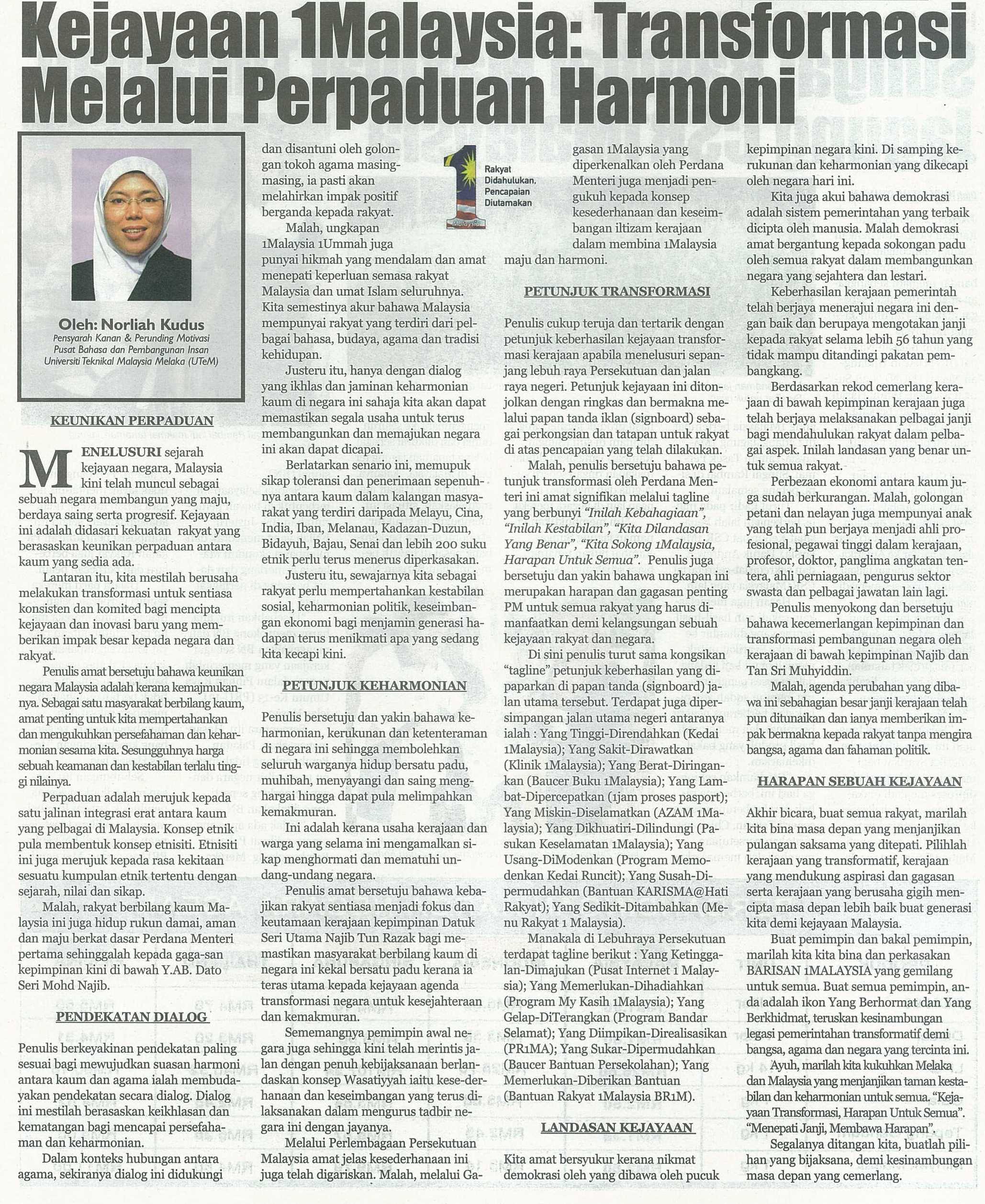 Kejayaan 1Malaysia: Transformasi Melalui Perpaduan Harmoni