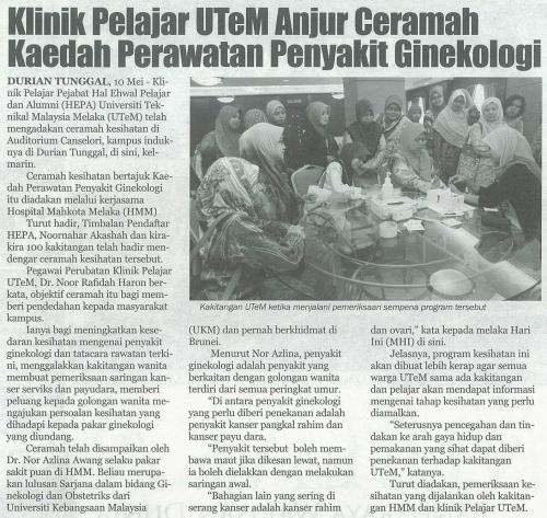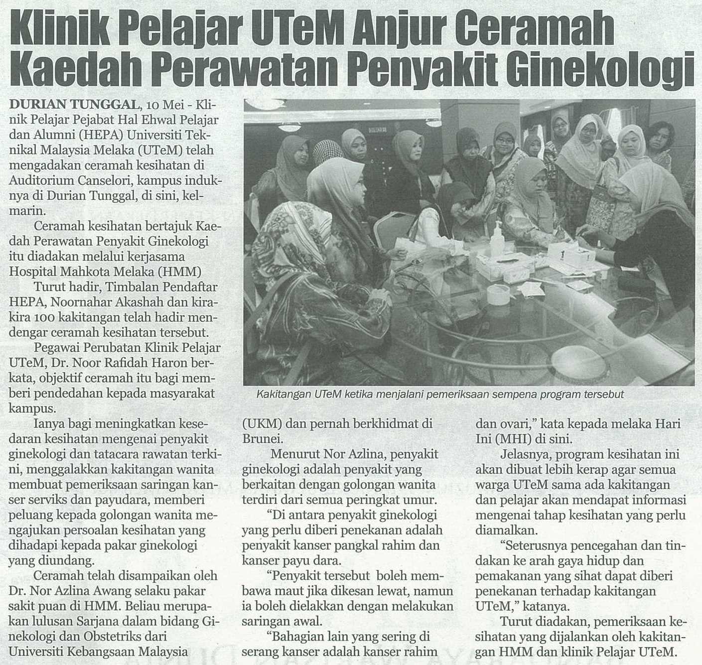 Klinik Pelajar UTeM Anjur Ceramah Kaedah Perawatan Penyakit Ginekologi