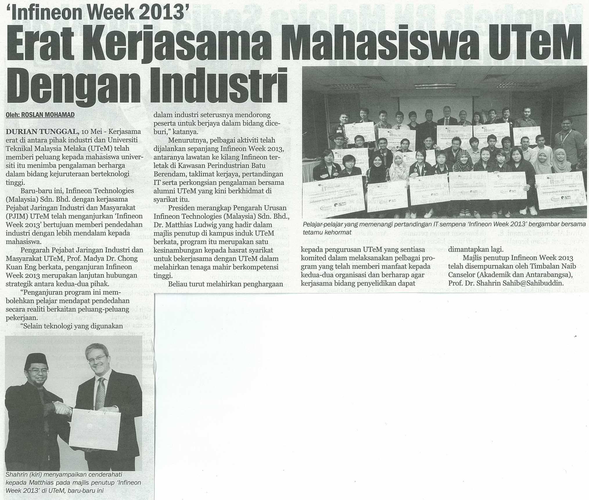 'Infeneon Week 2013' Erat Kerjasama Mahasiswa UTeM Dengan Industri