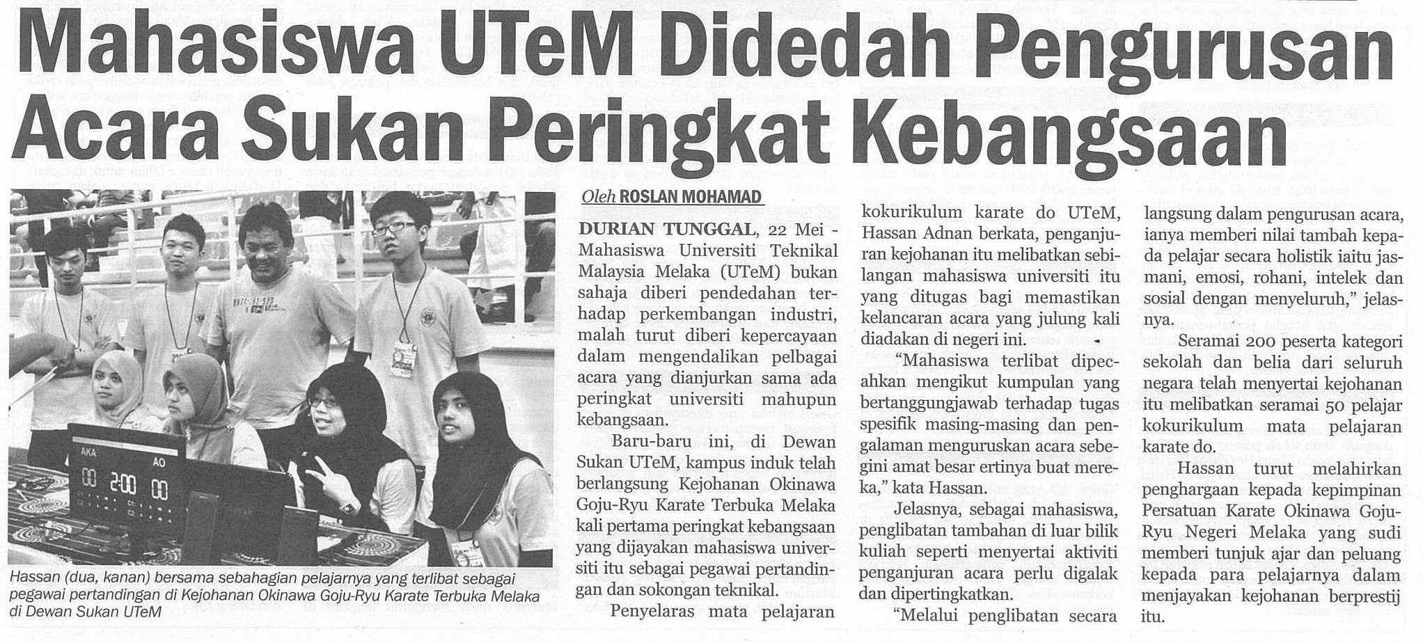 Mahasiswa UTeM Didedah Pengurusan Acara Sukan Peringkat Kebangsaan