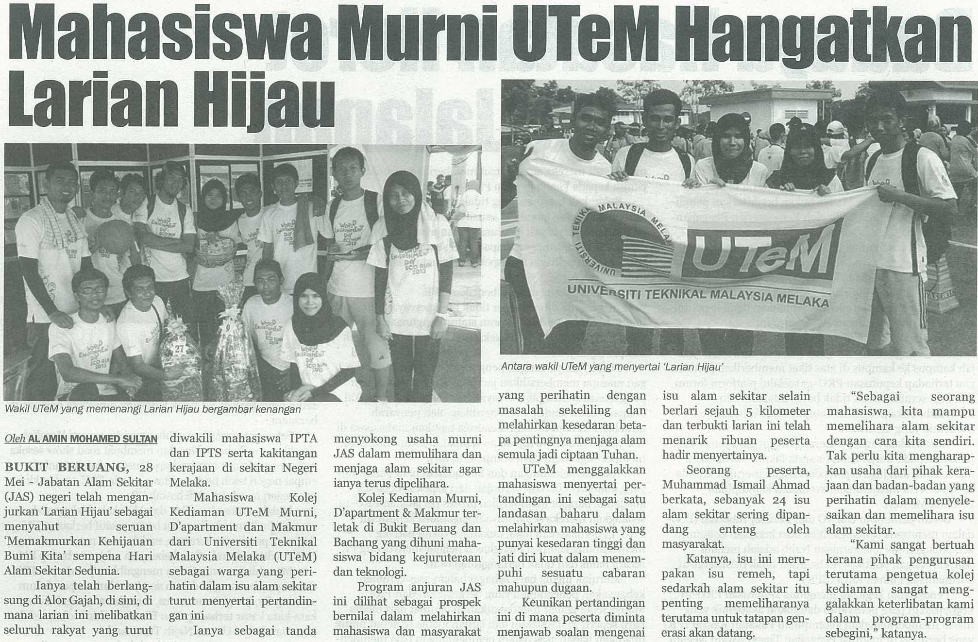 Mahasiswa Murni UTeM Hangatkan Larian Hijau
