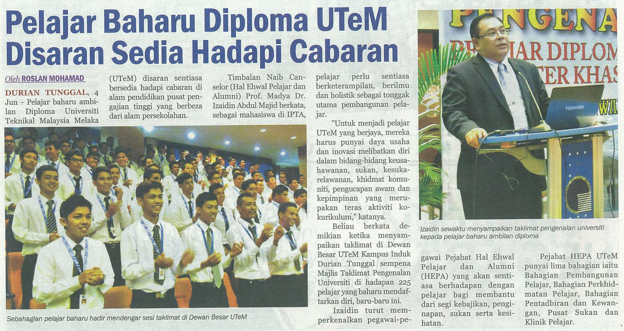 Pelajar Baharu Diploma UTeM Disaran Sedia Hadapi Cabaran
