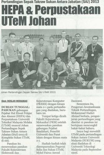 Pertandingan Sepak Takraw Sukan Antara Jabatan (SAJ) 2013 HEPA & Perpustakaan UTeM Johan