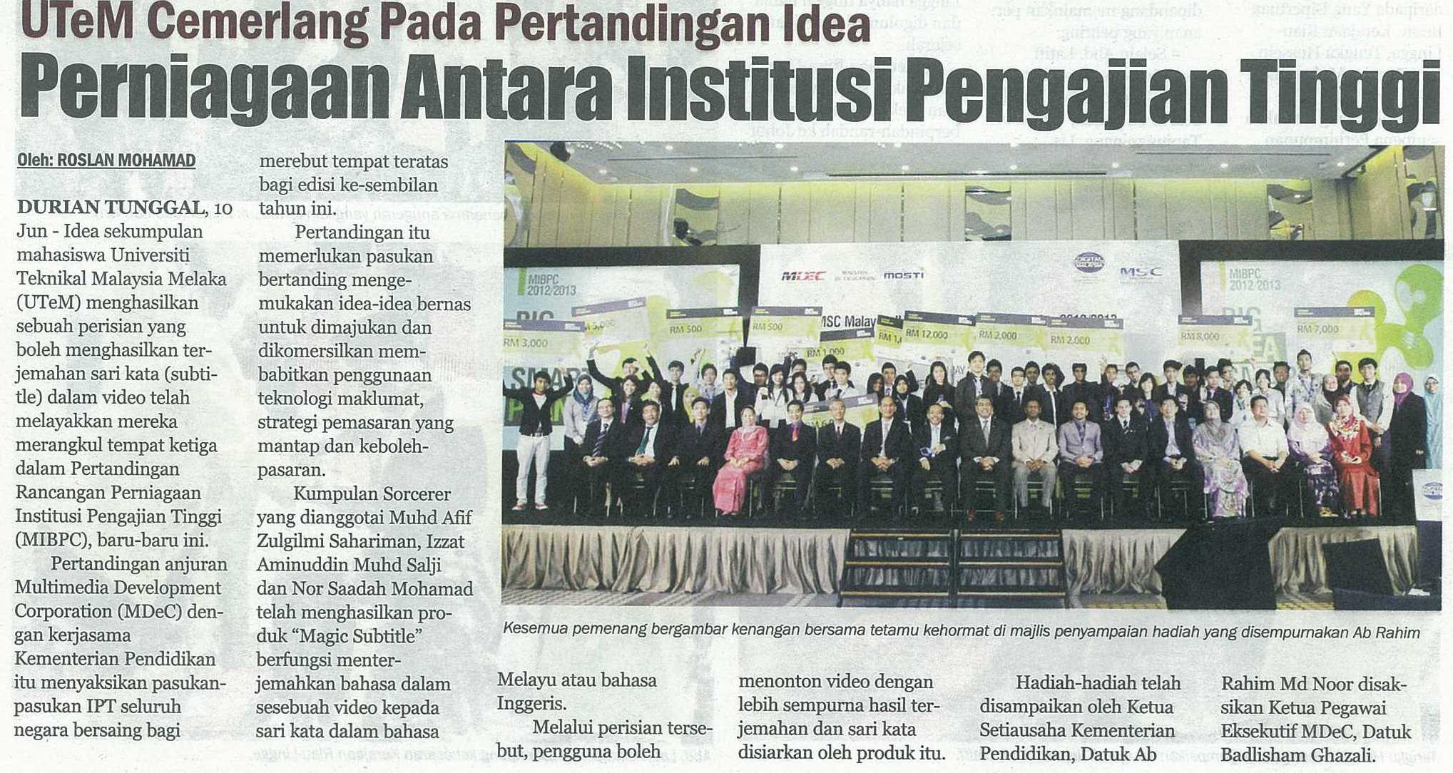 UTeM Cemerlang Pada Pertandingan Idea Perniagaan Antara Institusi Pengajian Tinggi