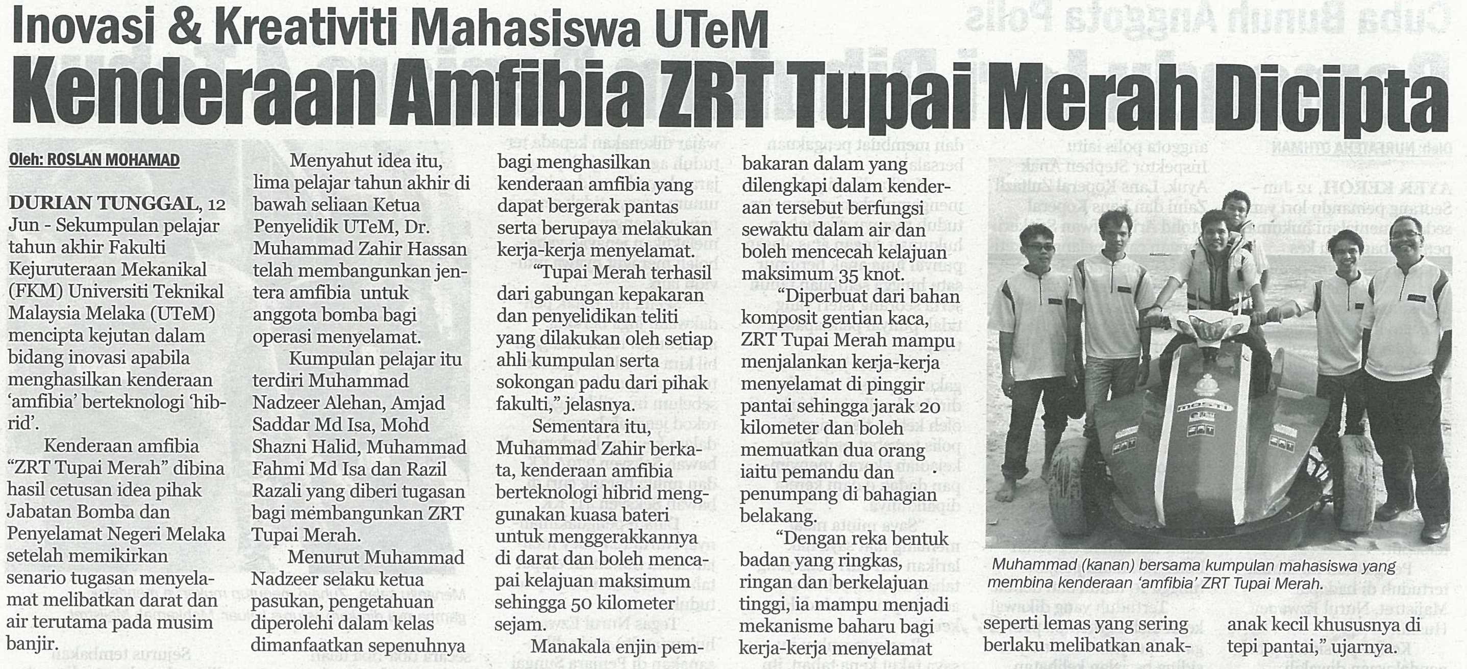 Inovasi & Kreativiti Mahasiswa UTeM Kenderaan Amfibia ZRT Tupai Merah Dicipta