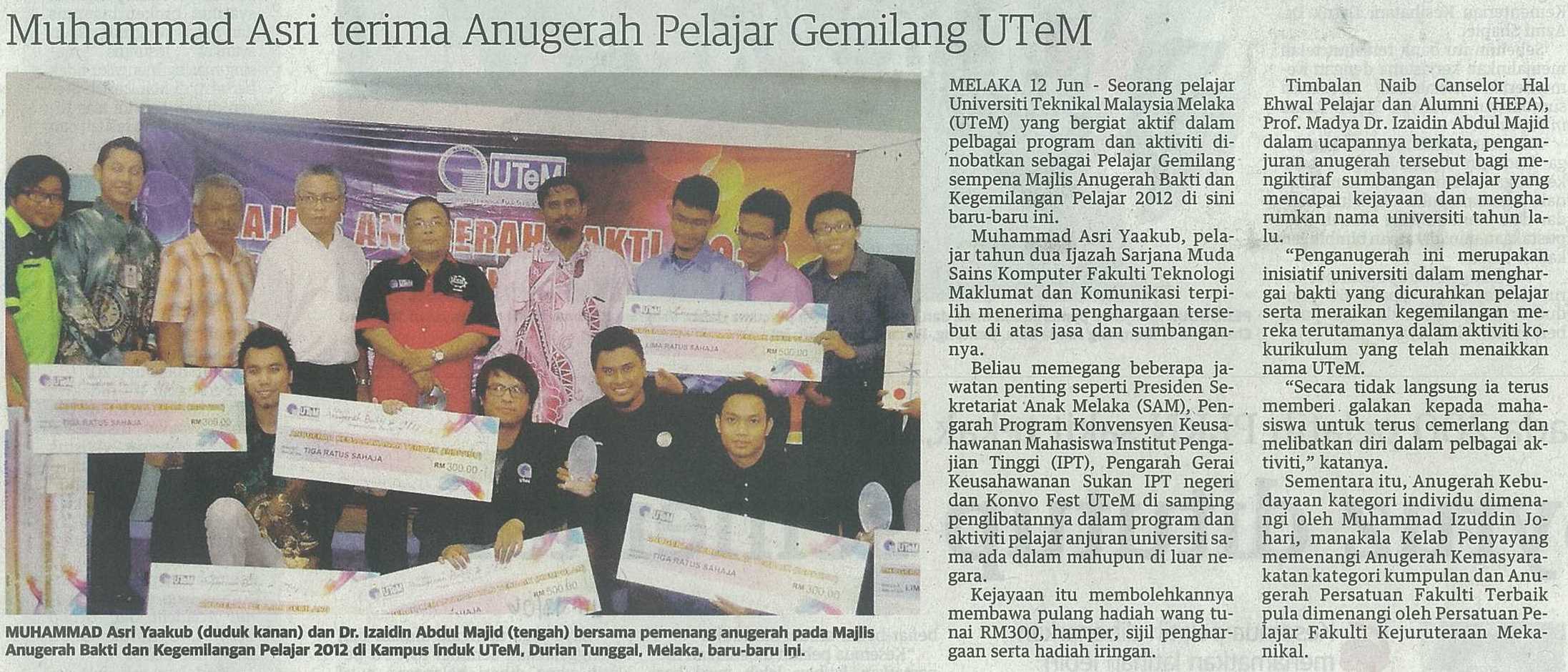 Muhammad Asri terima Pelaja Gemilang UTeM