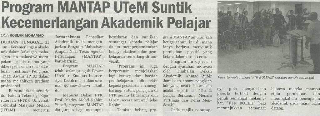 Program MANTAP UTeM Suntik Kecemerlangan Akademik Pelajar