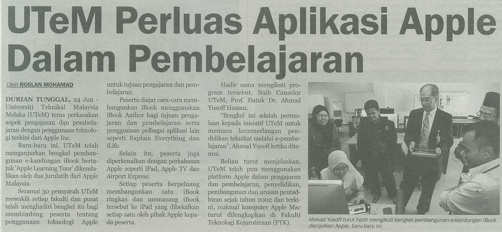 UTeM Perluas Aplikasi Apple Dalam Pembelajaran