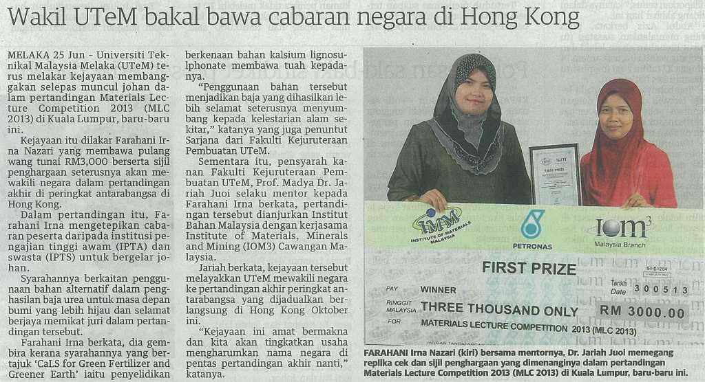 Wakil UTeM bakal bawa cabaran negara di Hong kong