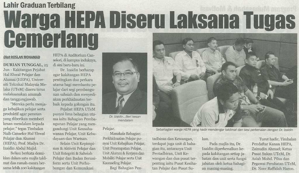 Lahir Graduan Terbilang Warga HEPA Diseru Laksana Tugas Cemerlang