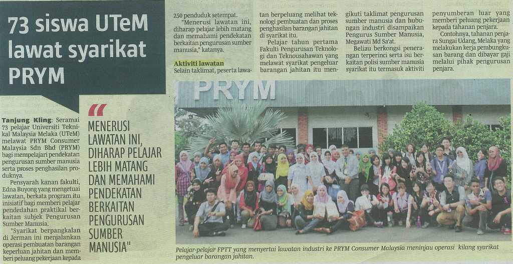 73 siswa UTeM lawat syarikat PRYM