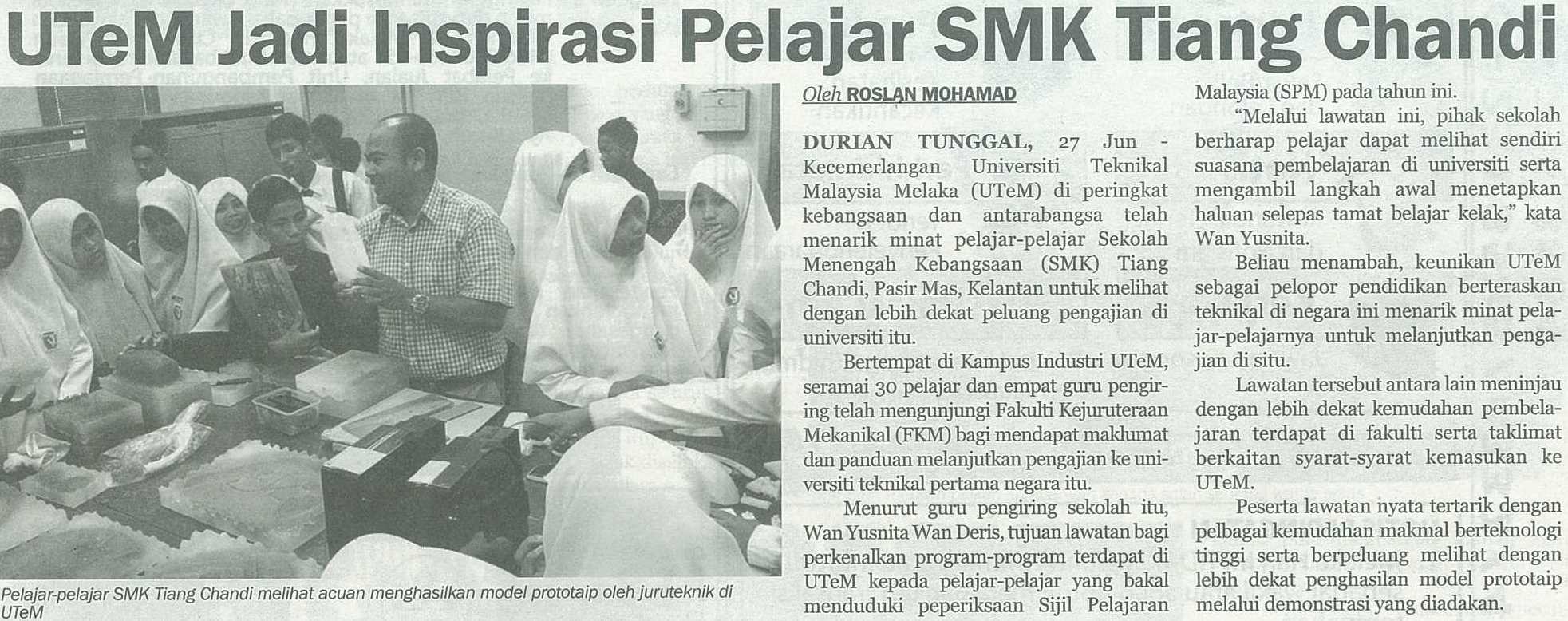 UTeM Jadi Inspirasi Pelajar SMK Tiang Chandi