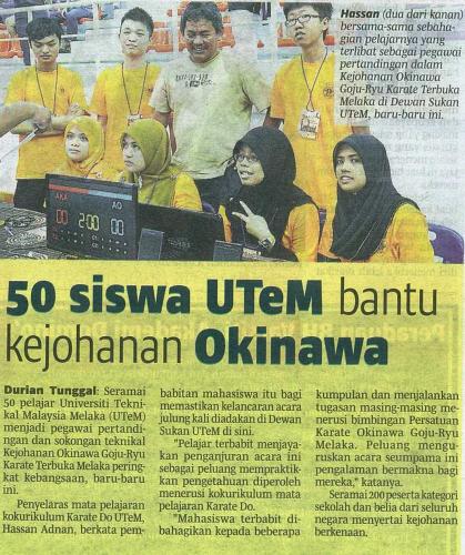 50 siswa UTeM bantu kejohanan Okinawa