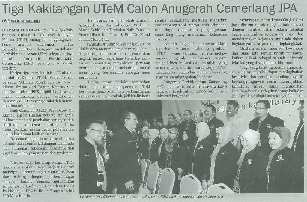 Tiga Kakitangan UTeM Calon Anugerah Cemerlang JPA