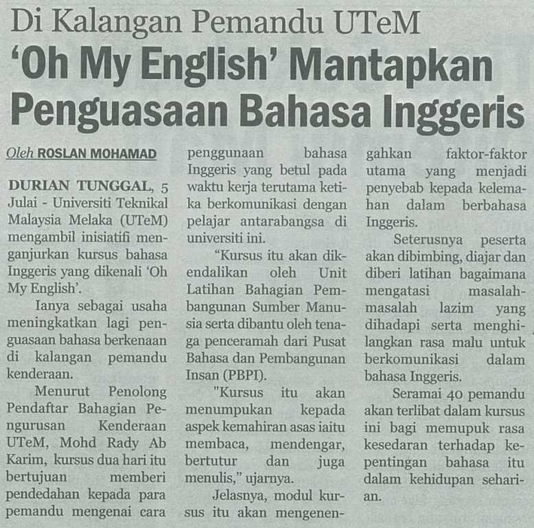 Di Kalangan Pemandu UTeM 'Oh My English' Mantapkan Penguasaan Bahasa Inggeris