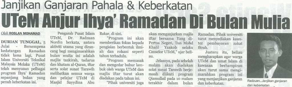 Janjikan Ganjaran Pahala & Keberkatan UTeM Anjur Ihya Ramadhan Di Bulan Mulia