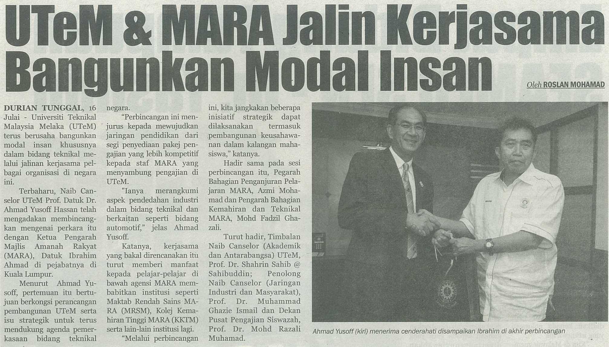 UTeM & MARA Jalin Kerjasama Bangunkan Modal Insan