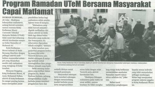 Program Ramadan UTeM Bersama Masyarakat Capai Matlamat