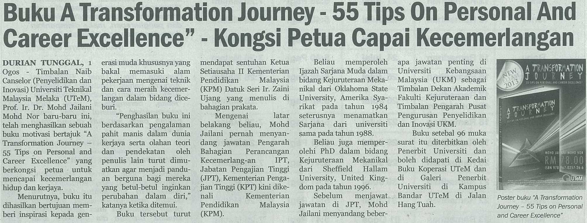 Buku A Transformation Journey - 55 Tips On Personal And Career Excellence - Kongsi Petua Capai Kecemerlangan