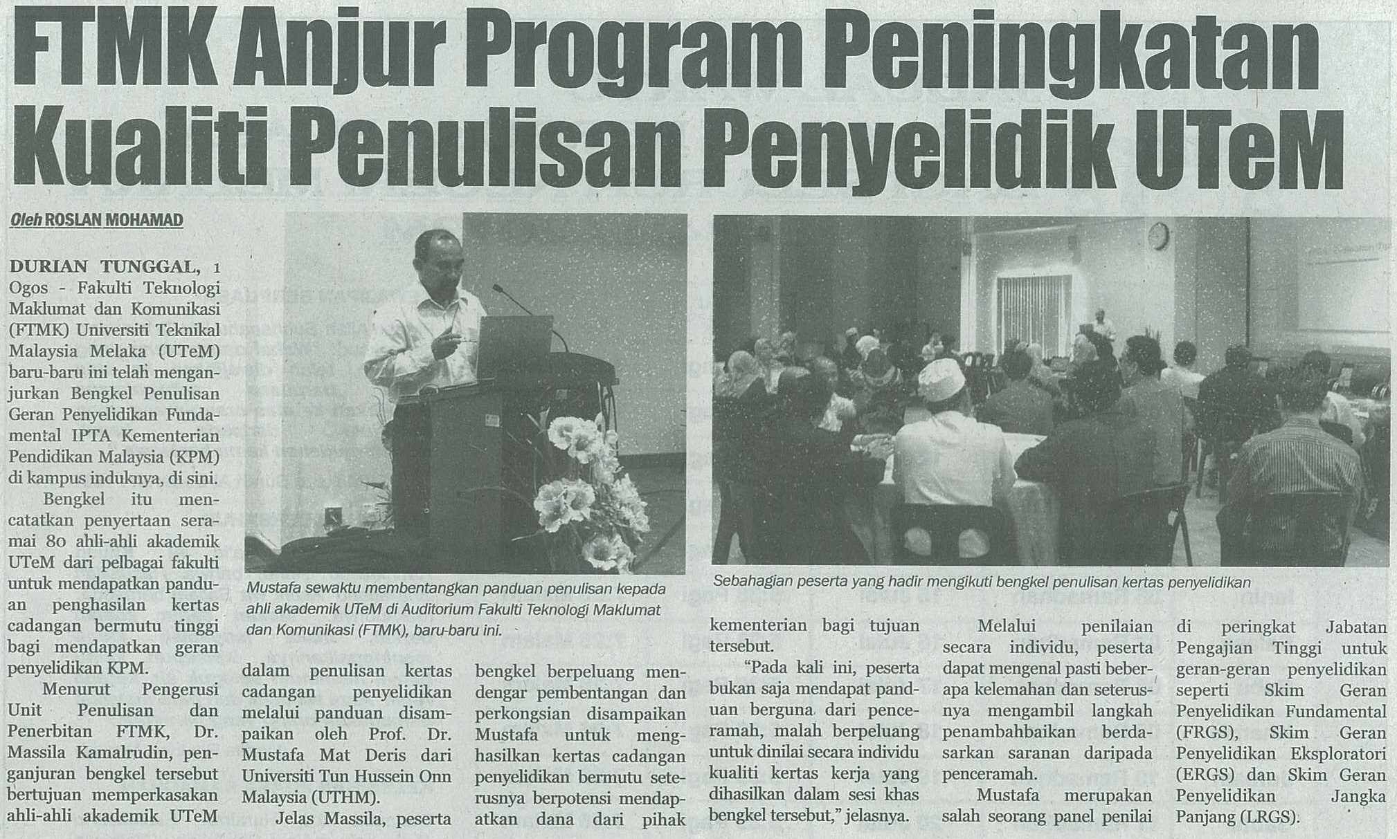 FTMK Anjur Program Peningkatan Kualiti Penulisan Penyelidik UTeM