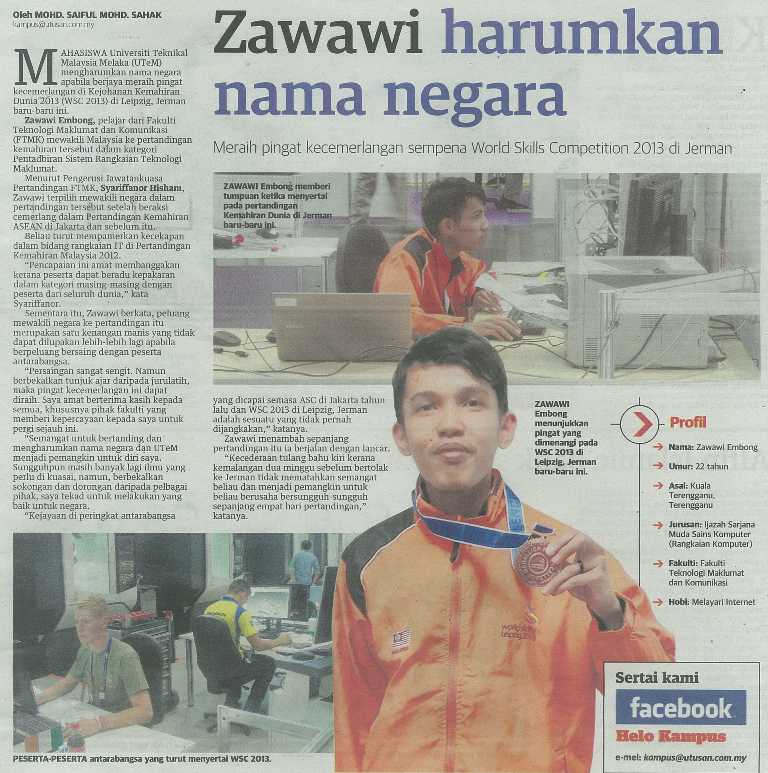 Zawawi harumkan nama negara meraih pingat kecemerlangan sempena Word Skills Competition 2013 Di Jerman