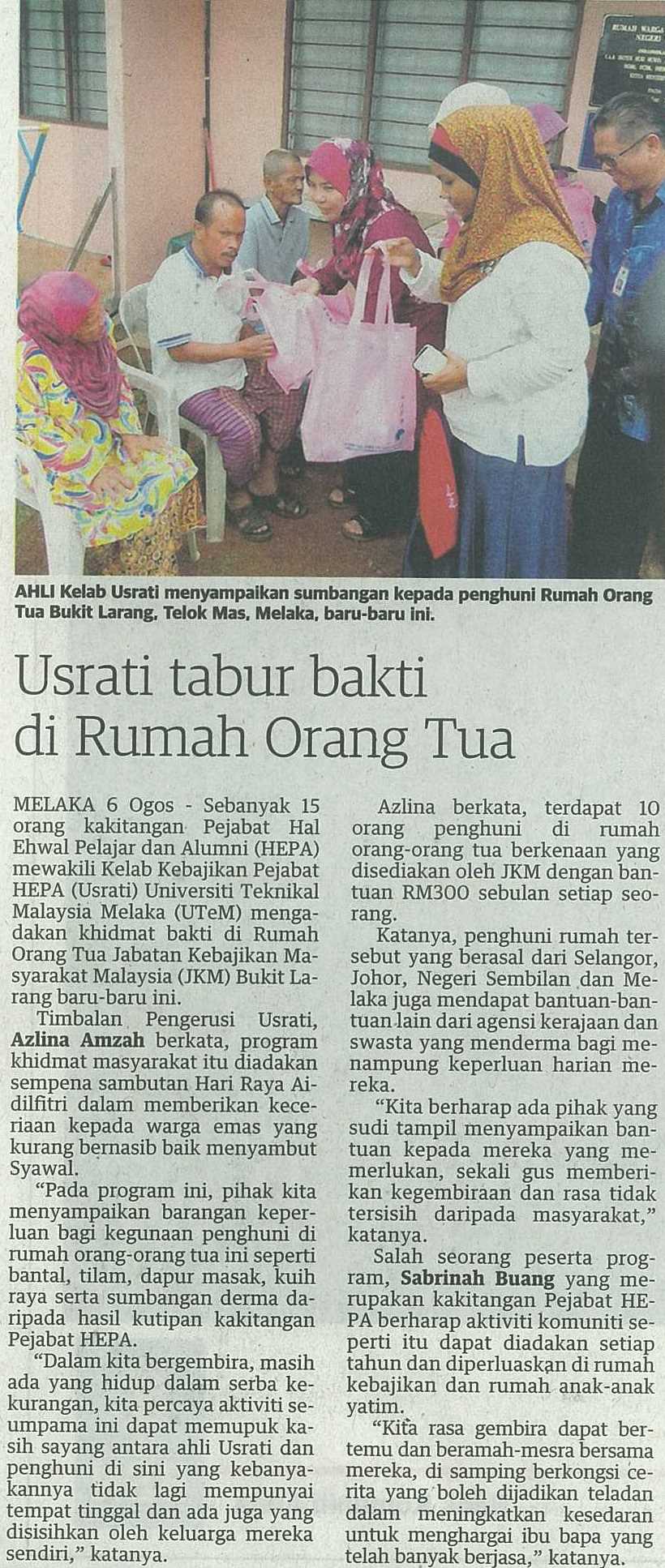 Usrati tabur bakti di Rumah Orang Tua
