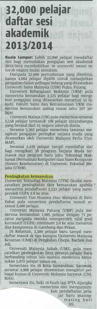 32,000 pelajar daftar sesi akademik 2013 / 2014