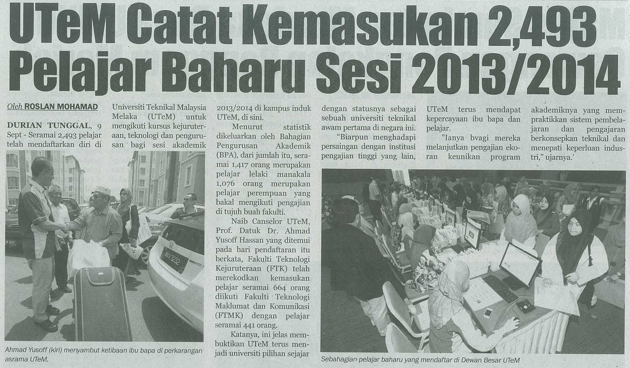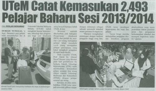UTeM Catat Kemasukan 2,493 Pelajar Baharu Sesi 2013/2014