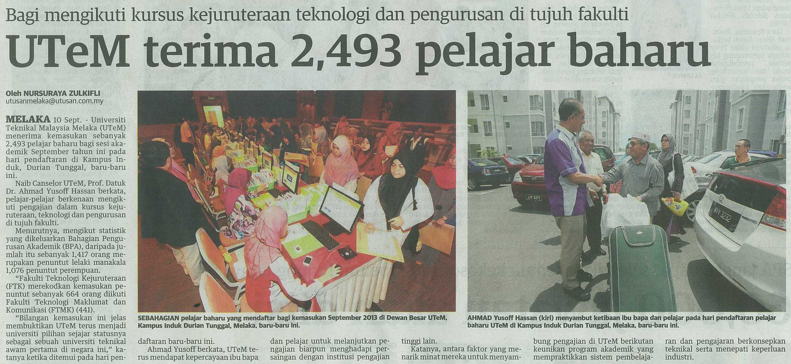Bagi mengikuti kursus kejuruteraan teknologi dan pengurusan di tujuh fakulti, UTeM terima 2,493 pelajar baharu