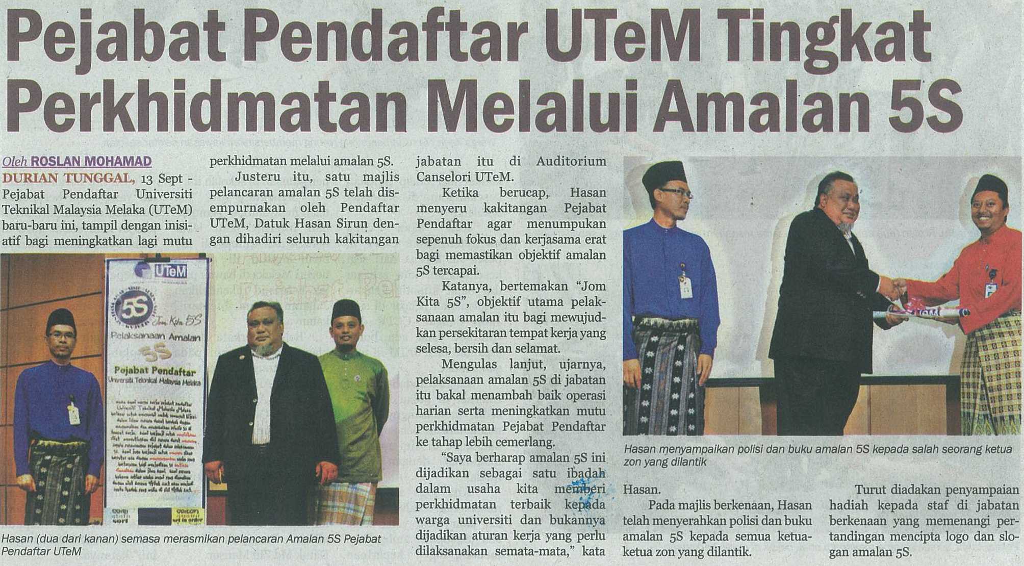 Pejabat Pendaftar UTeM Tingkat Perkhidmatan Melalui Amalan 5S