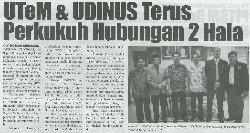 UTeM & UDINUS Terus Perkukuh Hubungan 2 Hala