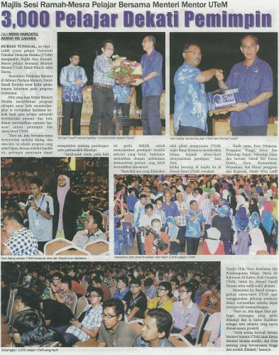 Majlis Sesi Ramah-Mesra Pelajar Bersama Menteri Mentor UTeM 3,000 Pelajar Dekati Pemimpin