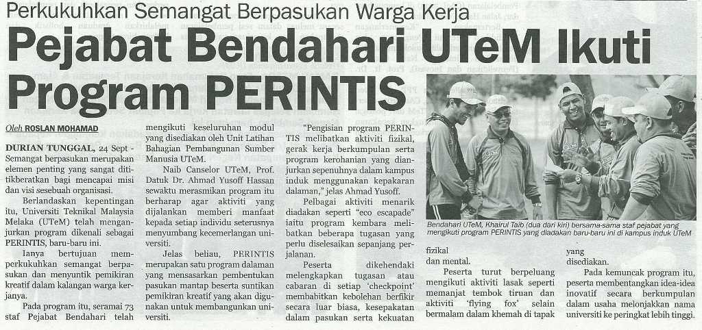 Perkukuhkan Semangat Berpasukan Warga Kerja Pejabat Bendahari UTeM Ikuti Program PERINTIS