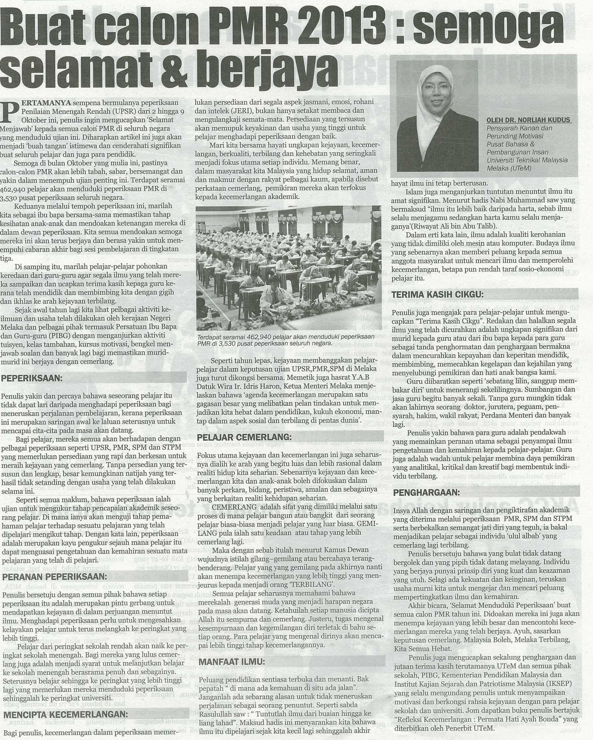 Buat calon PMR 2013: Semoga selamat & berjaya