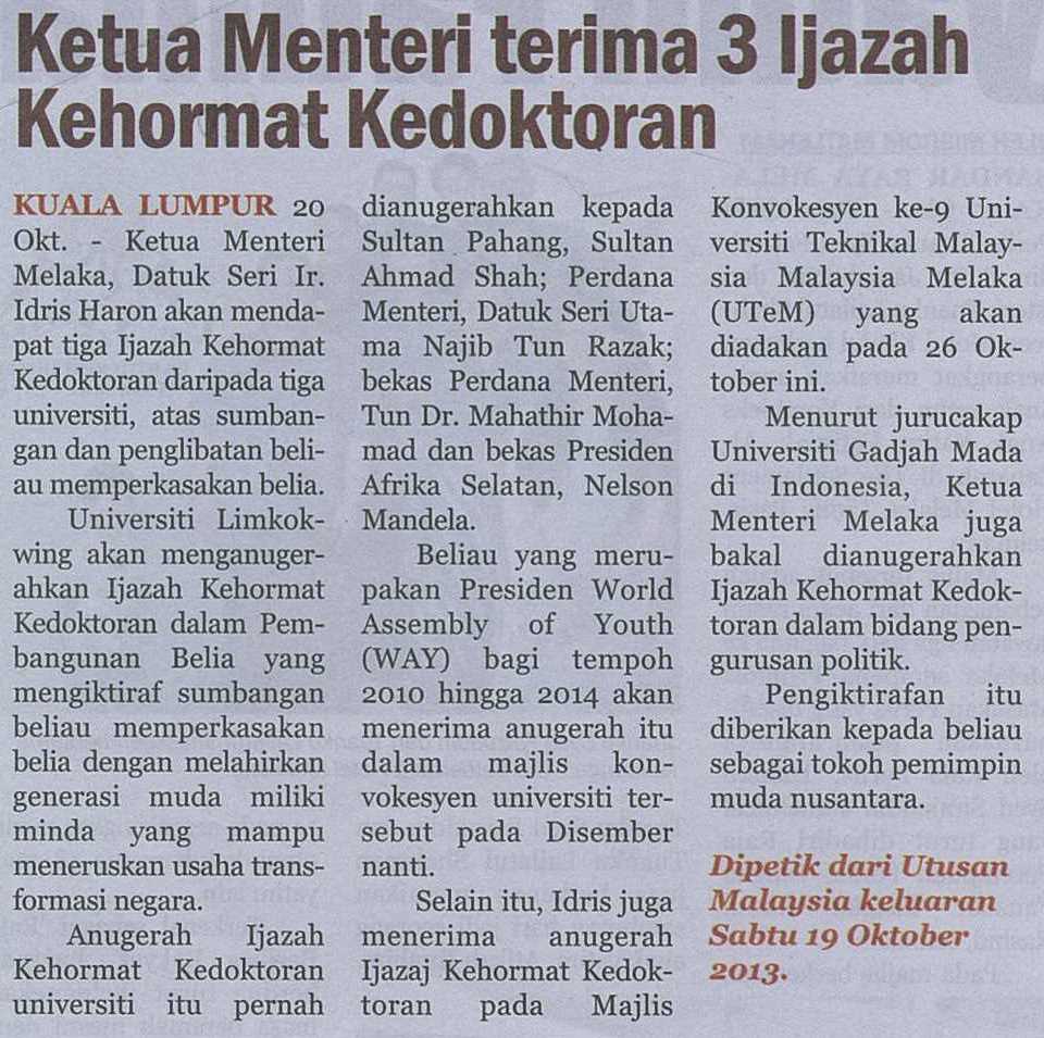 Ketua Menteri terima 3 Ijazah Kehormat Kedoktoran
