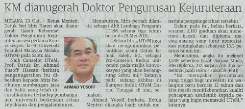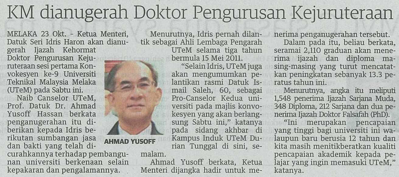 KM dianugerah Doktor Pengurusan Kejuruteraan