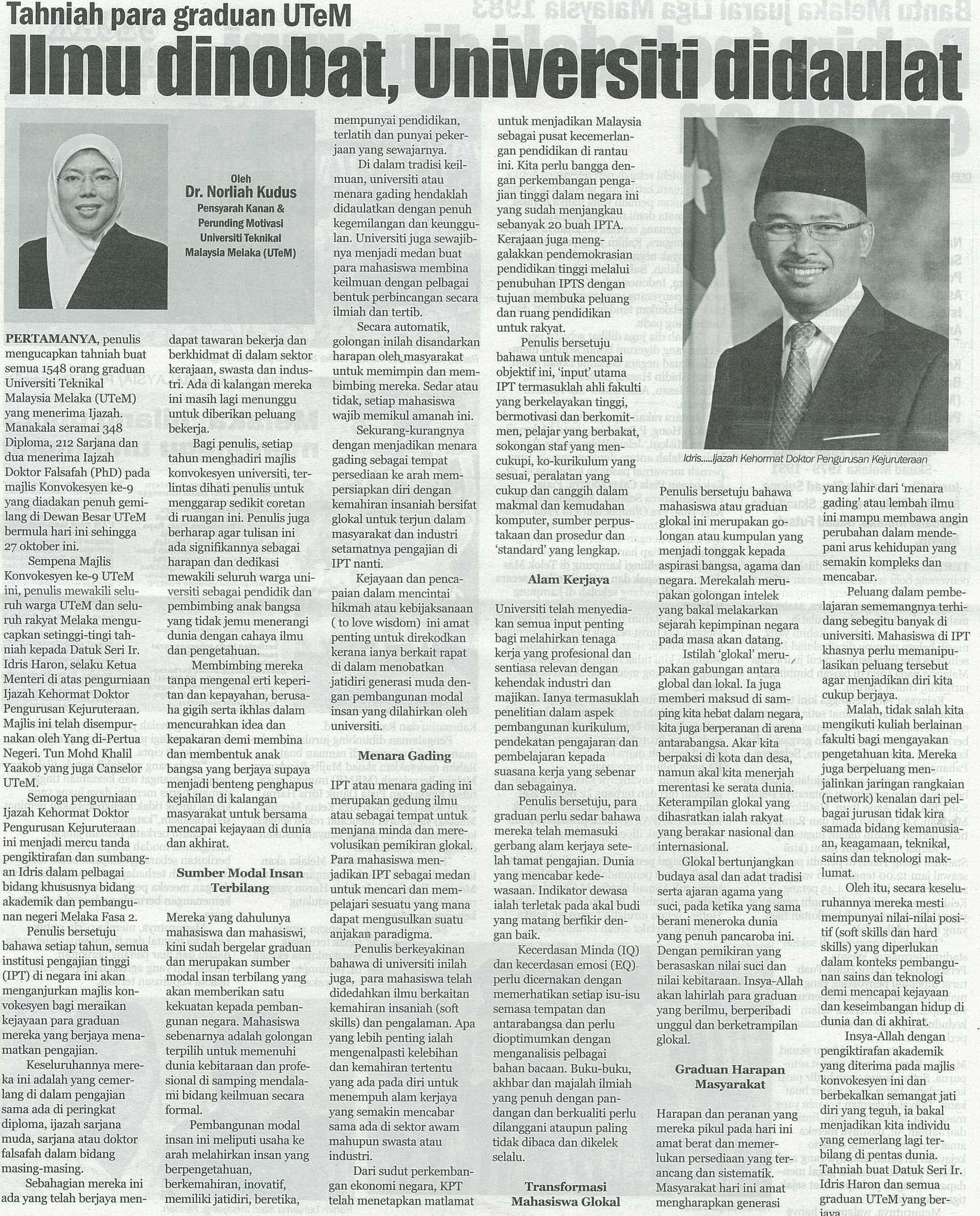 Tahniah para graduan UTeM Ilmu dinobat, Universiti didaulat