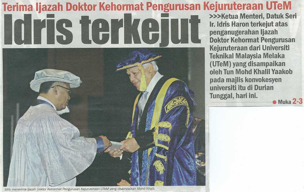 Terima Ijazah Doktor Kehormat pengurusan Kejuruteraan UTeM Idris terkejut