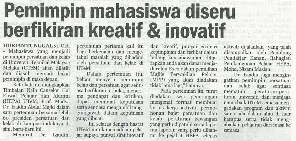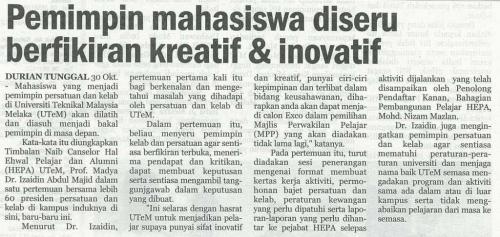 Pemimpin mahasiswa diseru berfikiran kreatif & inovatif