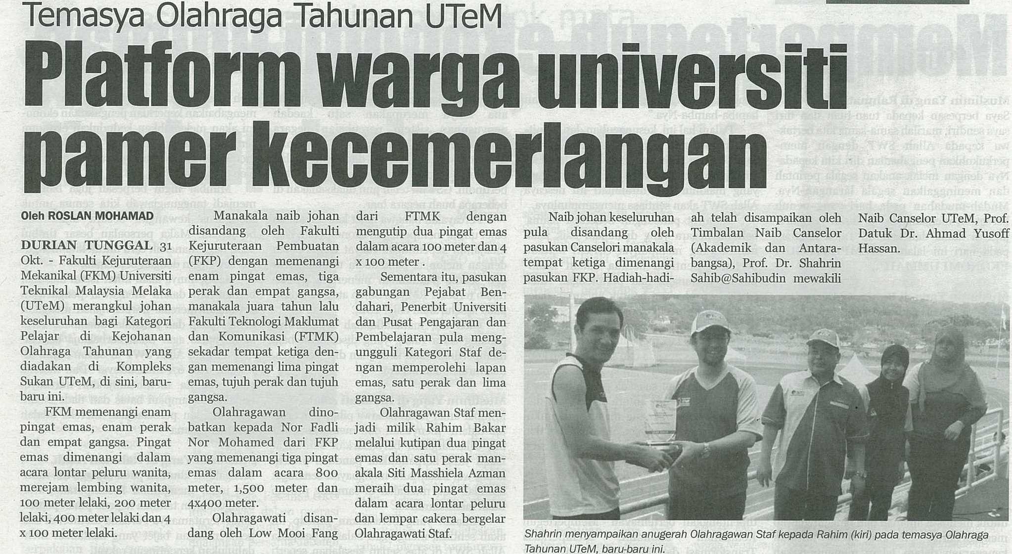 Temasya Olahraga Tahunan UTeM Platform warga universiti pamer kecemerlangan